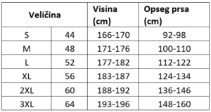 Tablica veličina: