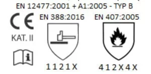 Razina zaštite od toplinskih rizika: EN407 – 412X4X